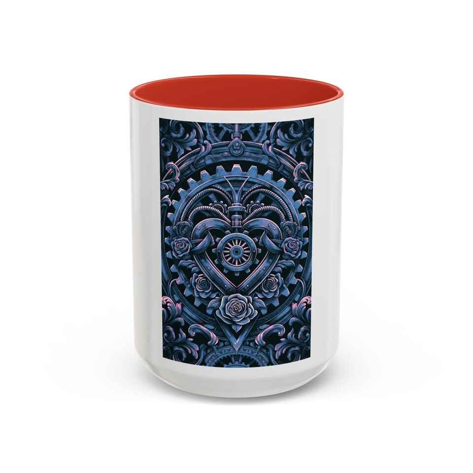 Gothic Steampunk Heart Gear Accent Mug 11oz 15oz Artwork Filigree