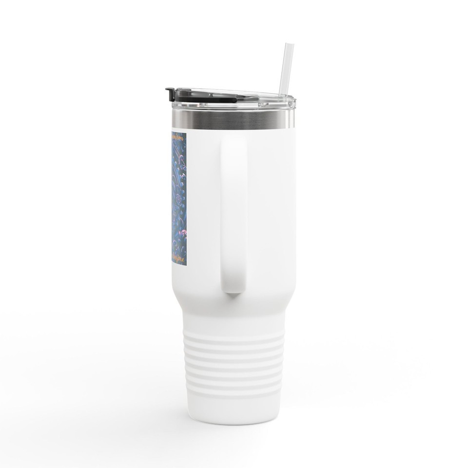 This 40oz insulated travel mug brings long-haul durability and everyday ease to routines that run from dawn coffee to late-night study sessions. Thick stainless-steel walls lock in temperature so hot drinks stay warm and iced beverages stay refreshingly cold for hours. A comfortable ergonomic handle and large capacity mean fewer refills on road trips, long commutes, or workshop shifts. The secure, leak-resistant lid plus included straw make sipping simple whether you?re driving, hiking, or parked at a desk. The mug?s powder-coated finish and crisp printed panel add a touch of personality that ages well through daily knocks and outdoor use. Thoughtfully made with BPA-free materials and hand-wash recommended care, it?s built to travel with you.