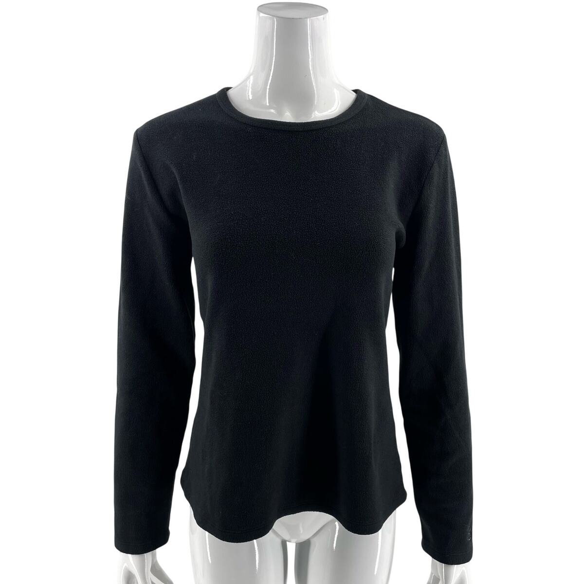 Cuddl Duds Womens Fleece Sweater Size Large Black Crew Neck Long Sleeve Stretch