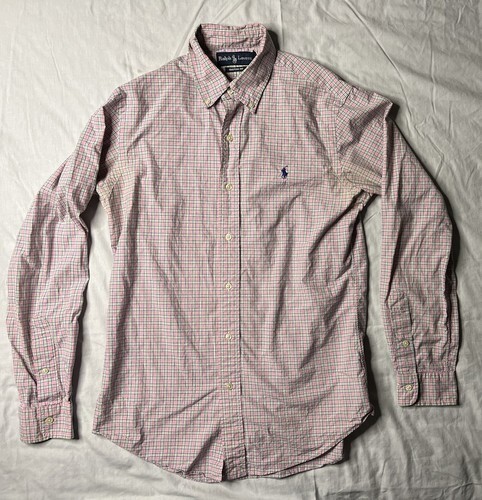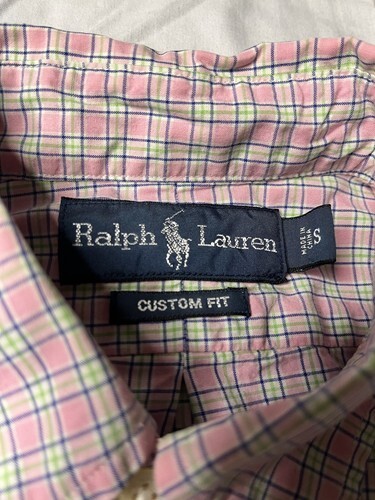 Polo Ralph Lauren Shirt Small Pink Green Plaid Long Sleeve Button Up Custom Fit