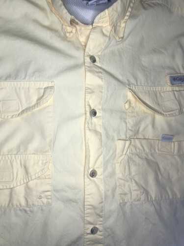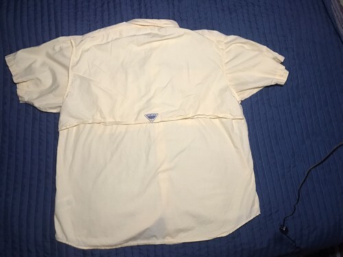 Columbia PFG Vented Short Sleeve Fishing Outdoor Shirt Men's Size L Yellow.