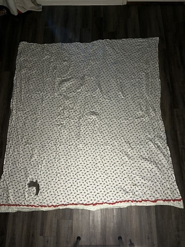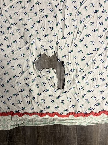 Good preowned condition. There is a rip and some stains, see pictures. Queen size sheet, approximately 81?x88?.