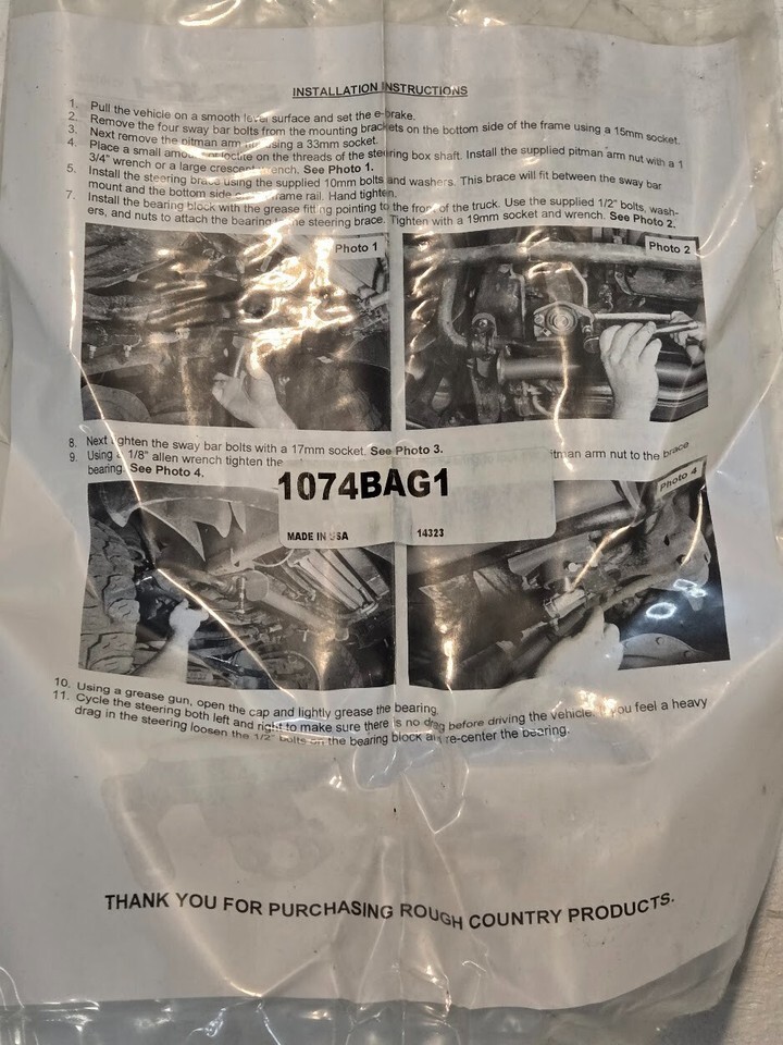 Hardware Kit 92107400 for Rough Country Steering Brace for 03-08 Dodge 2500/3500