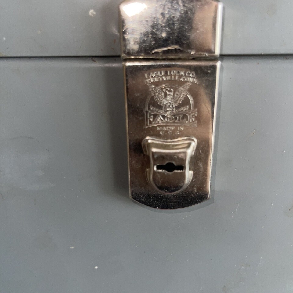 Great VINTAGE Industrial EAGLE LOCK COMPANY GRAY METAL Organizer STORAGE Travel BOX VG.