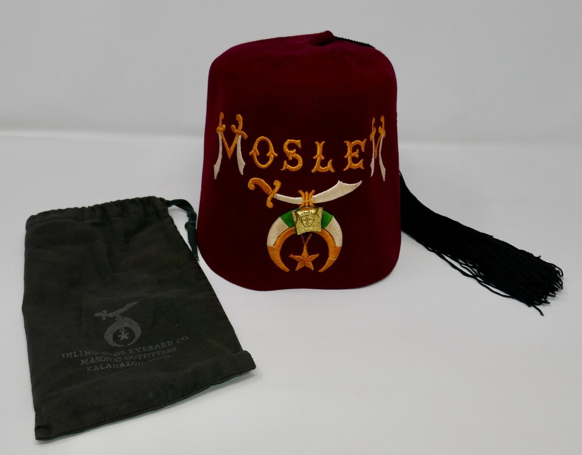 Masonic Shriners Moslem Freemason Embroidered Ihling Bros Fez Hat Tassel Pin