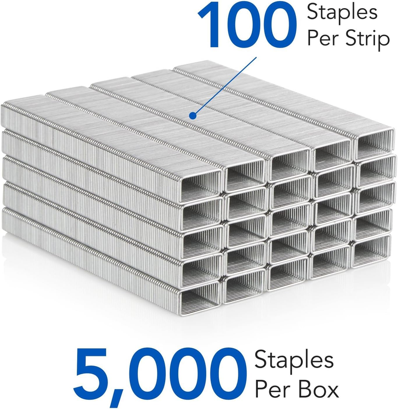 5,000 STAPLES ? Each strip of 100 staples provides stable, continuous stapling, even when handling high volumes of paperwork. Refills are easy and convenient, with 5,000 staples in every box.