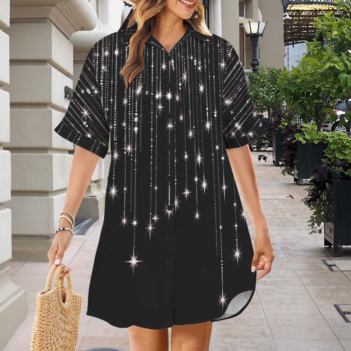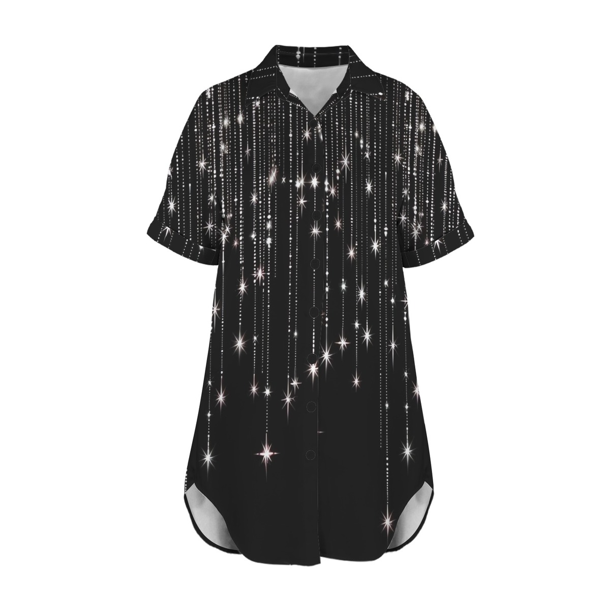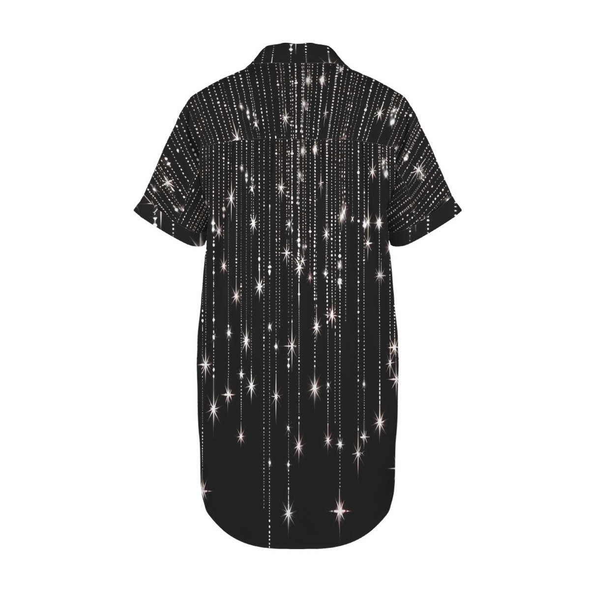 Black Falling Stars Button Front Shirt Dress and 50 similar items