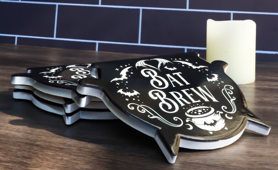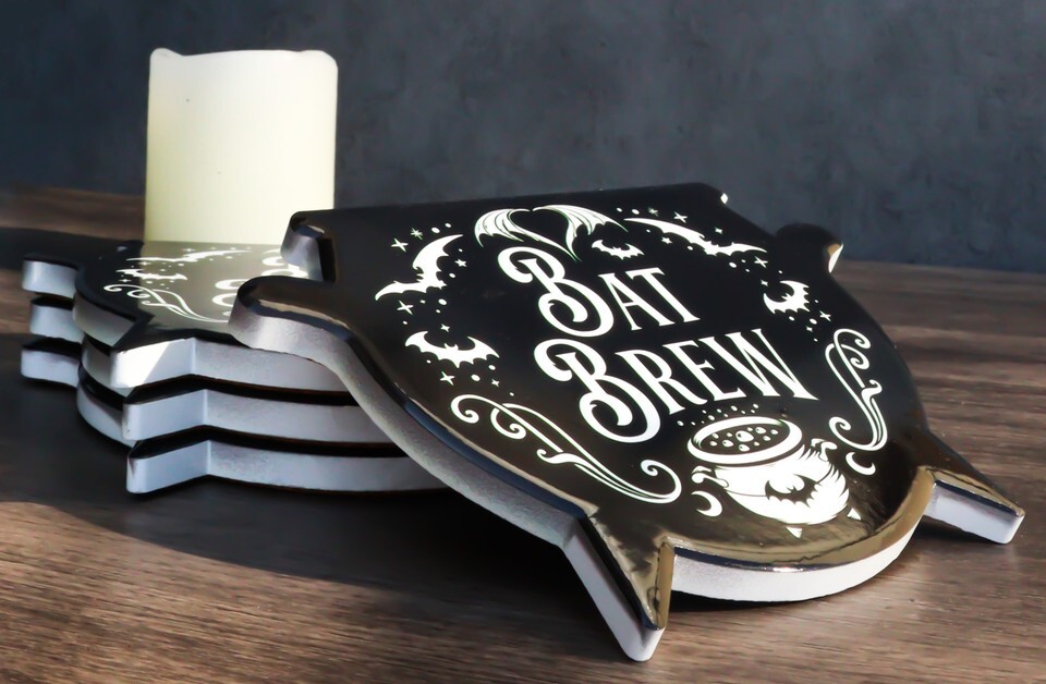? Sink your fangs into the Bat Brew Cauldron coasters. A bloody brilliant addition to the popular bat brew collection in our macabre line.