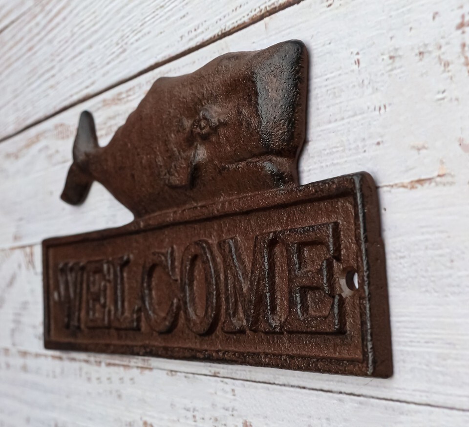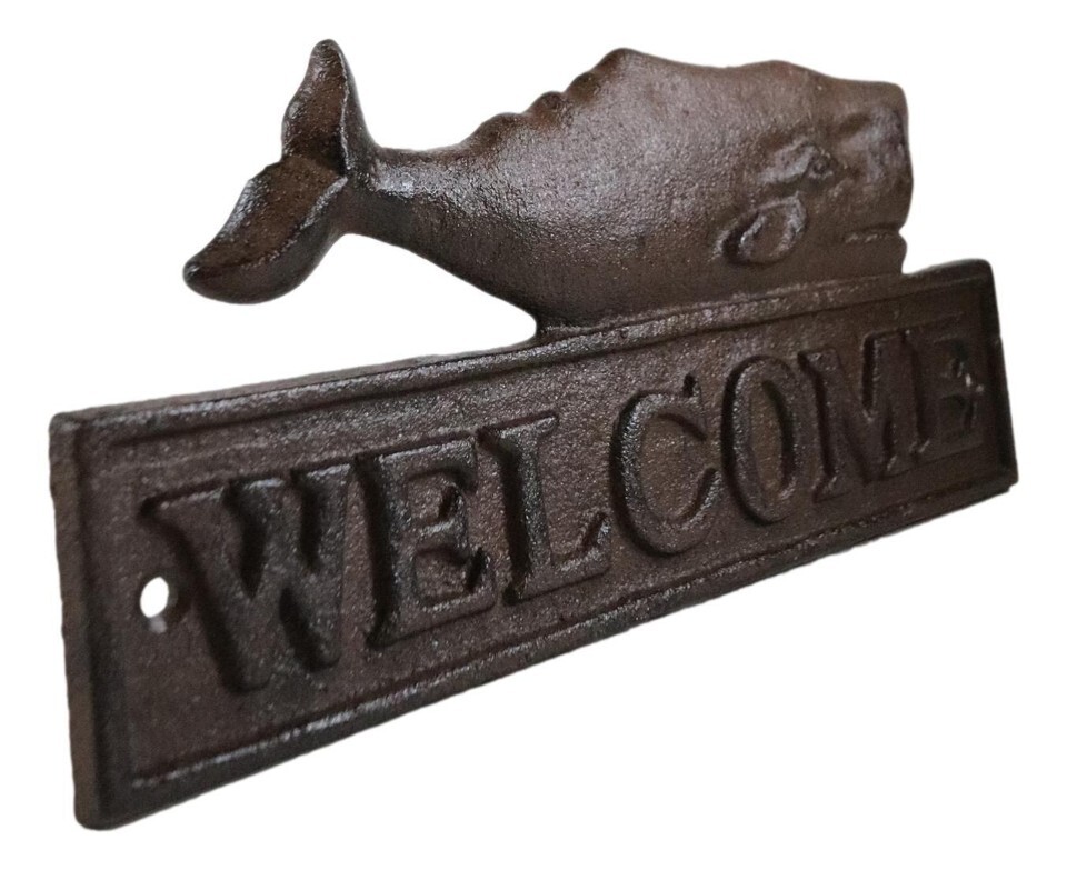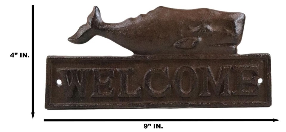 ? Elevate your coastal decor with our captivating Cast Iron Whale Welcome Sign Wall Plaque. Handcrafted with meticulous attention to detail, this charming piece brings a touch of maritime whimsy to your home's entrance. Crafted to last, its sturdy cast iron construction ensures a warm and enduring welcome for years to come.