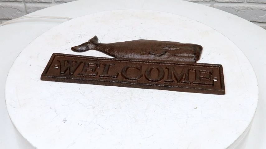 ? This Beautiful Sperm Whale Wall Welcome Sign is made of cast iron, hand painted and polished individually with rustic aged bronze finish. Color tone may vary slightly from pictures.