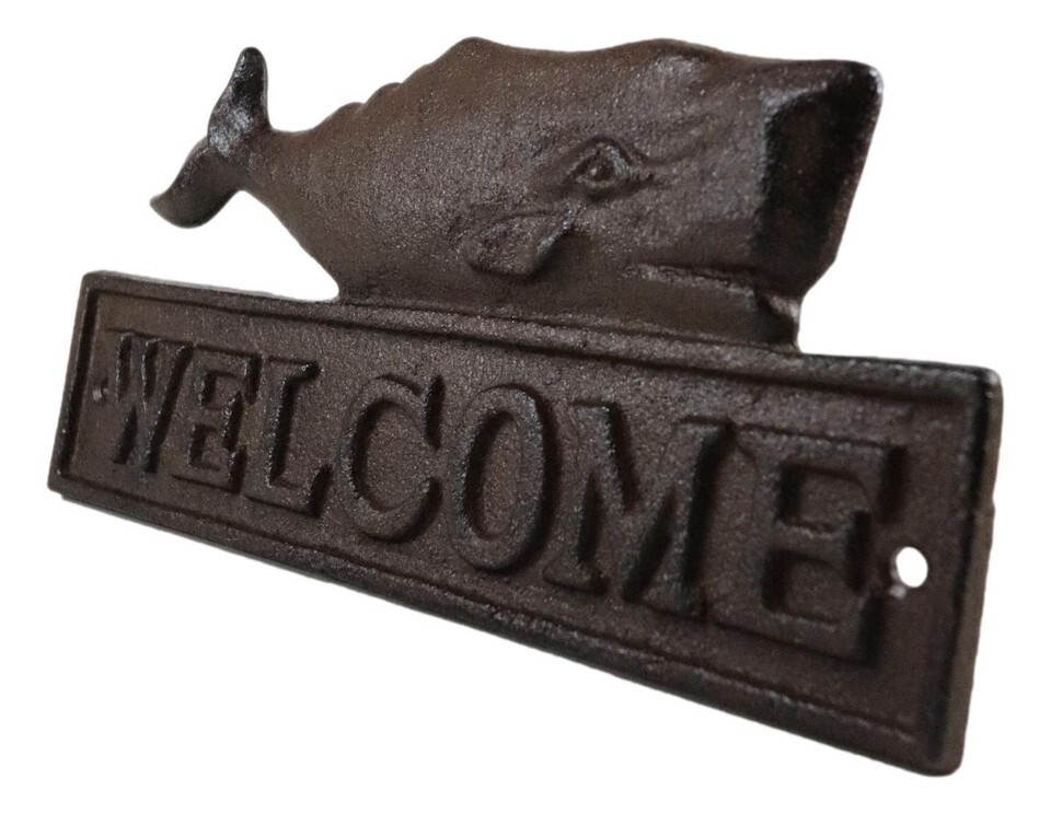 Cast Iron Nautical Ocean Sperm Whale Welcome Sign Decorative Wall Door Plaque