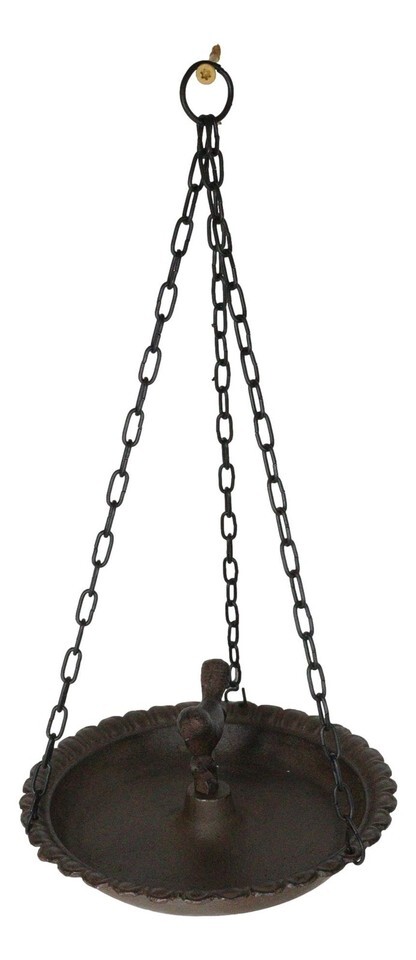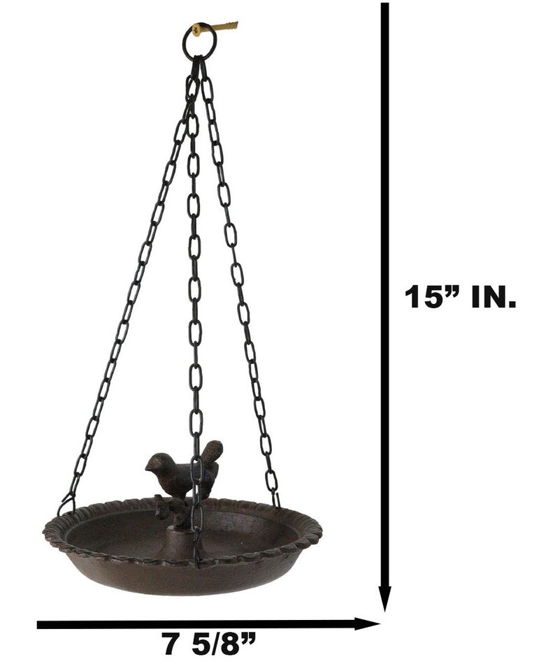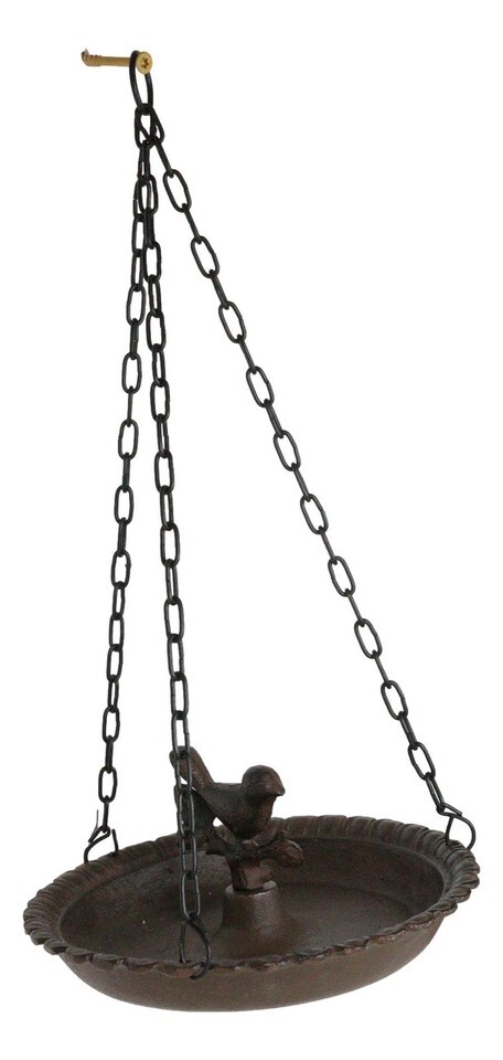 ? This Bird Perching On A Floral Petal Dish Bird Feeder/Bath Hanging Sculpture is made of weather resistant hardened cast iron .