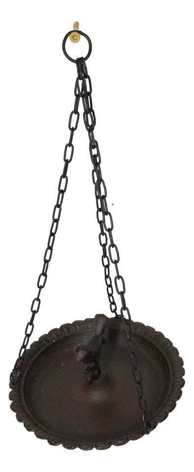 Cast Iron Love Bird On Branch Sunflower Basin Hanging Garden Bird Bath Feeder