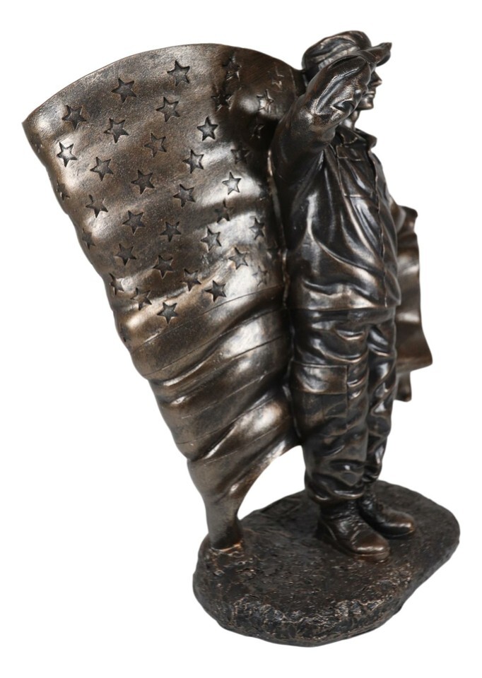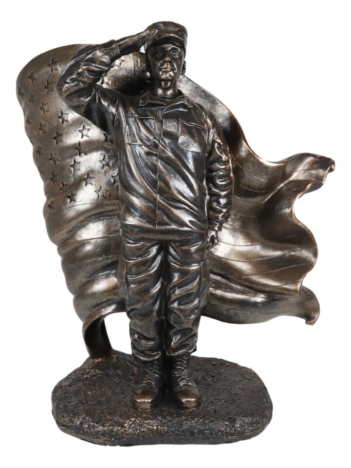 Ebros Solemn Tribute Patriotic American Soldier Saluting Flag Statue USA Soldier