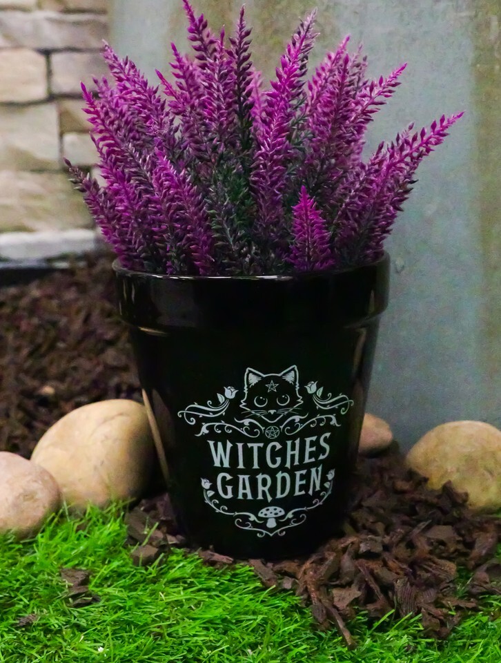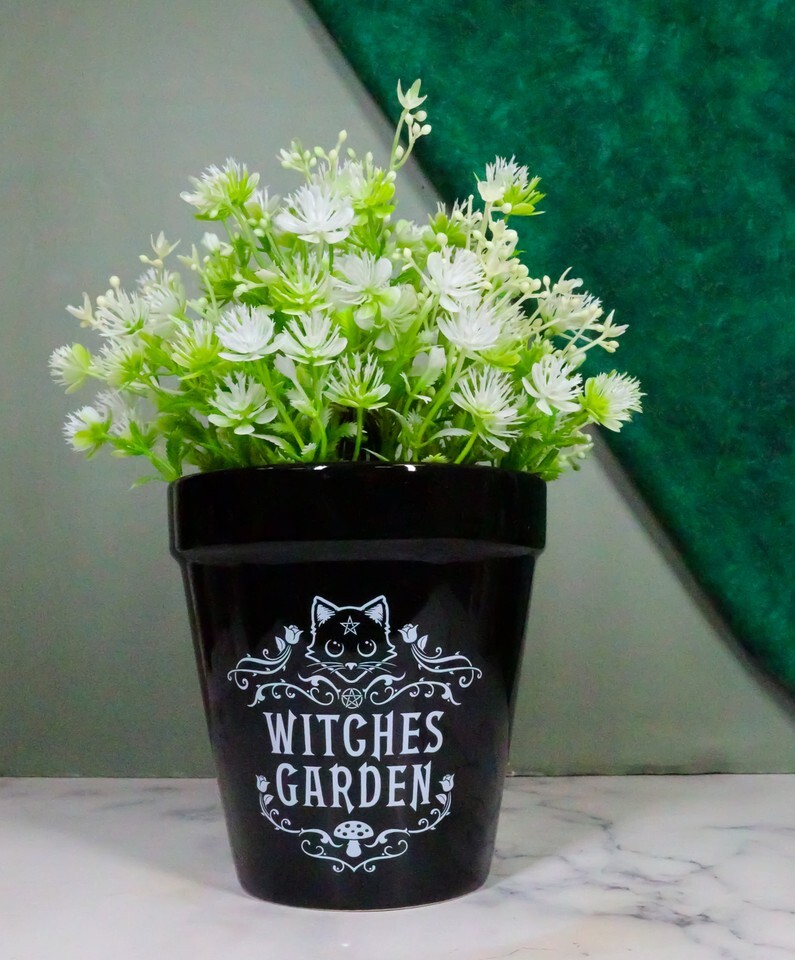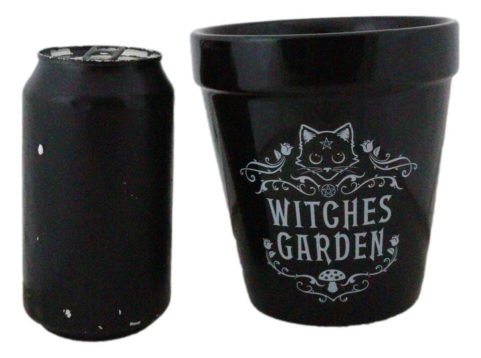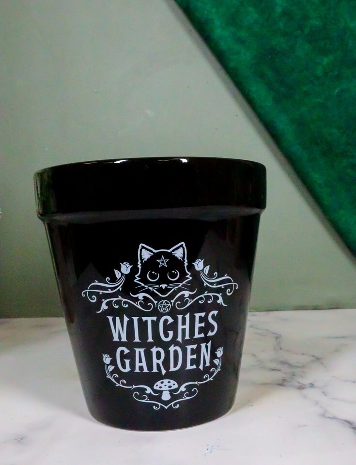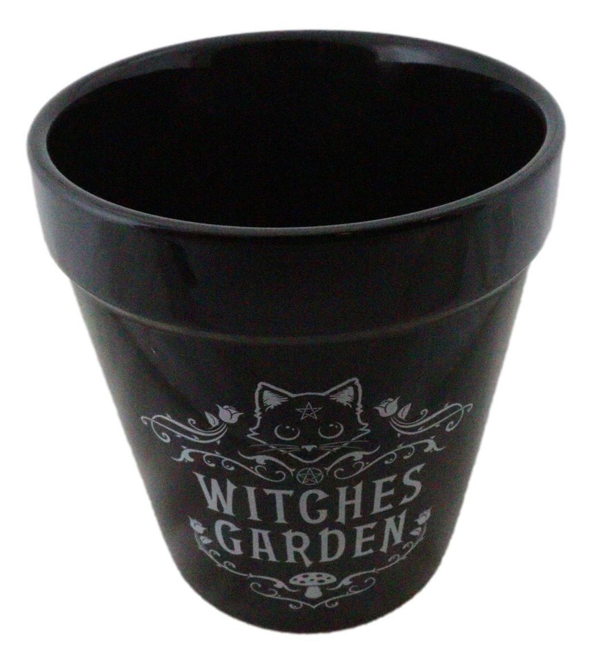 Black Cat Witches Garden Wicca Witchcraft Apothecary Flower Herbs Planter Pot