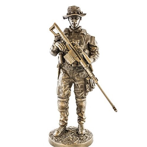 ? This is an inspirational figurine of a soldier kneeling in prayer for courage. He is fully armed, with a rifle in his hands, preparing to enter the fiercest battle at war. In service to his country, his family and God, he takes up arms and fights for justice and freedom.