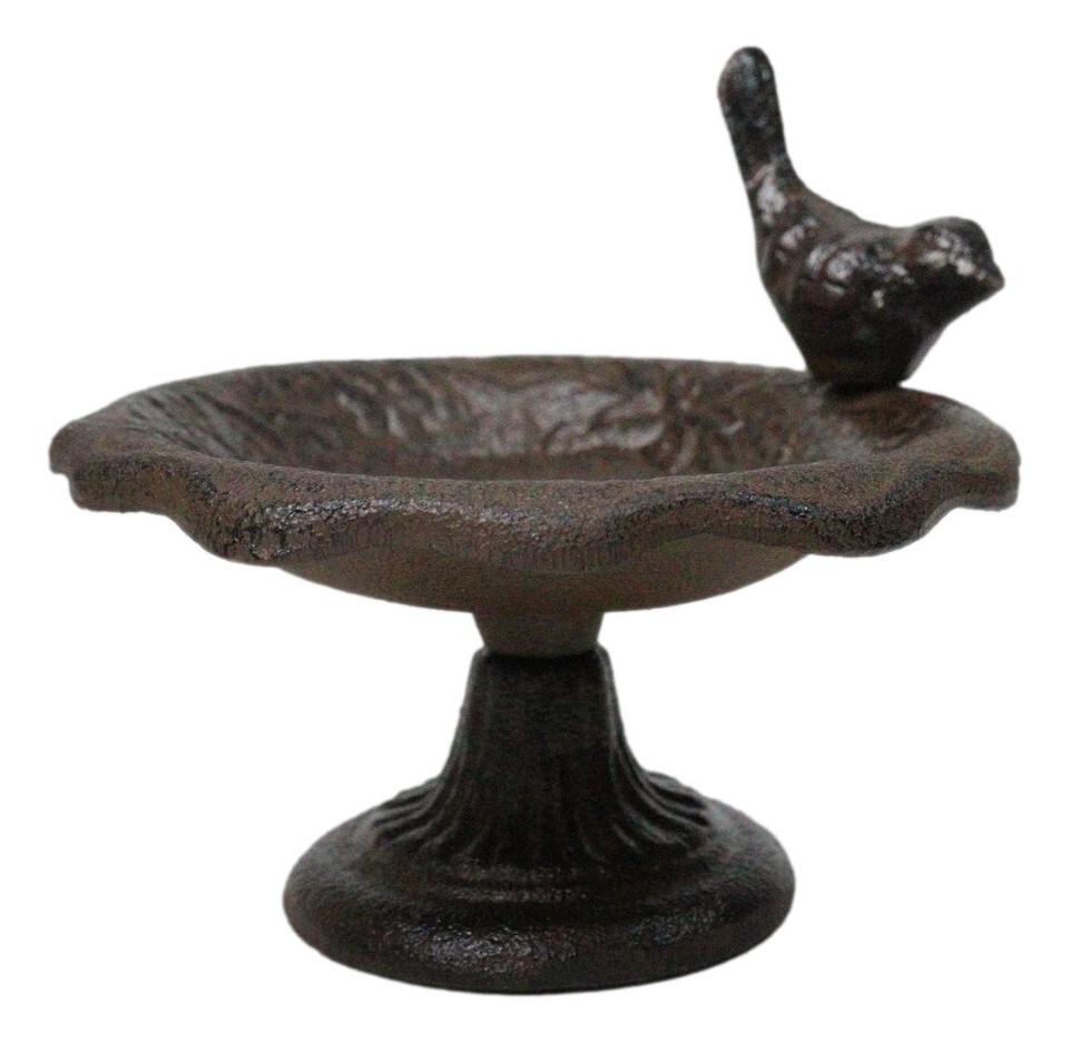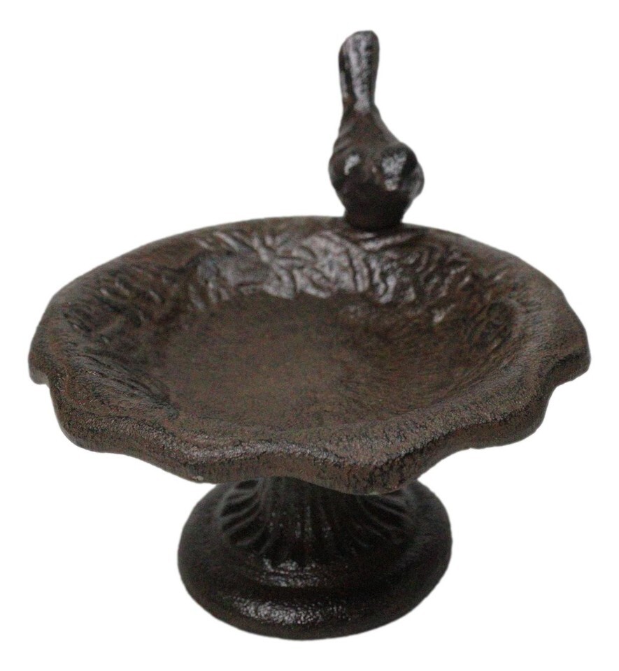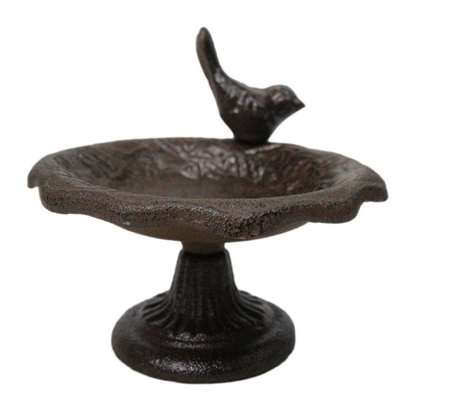 Cast Iron Rustic Whimsical Bird On Fountain Bird Feeder Bath Small Sculpture
