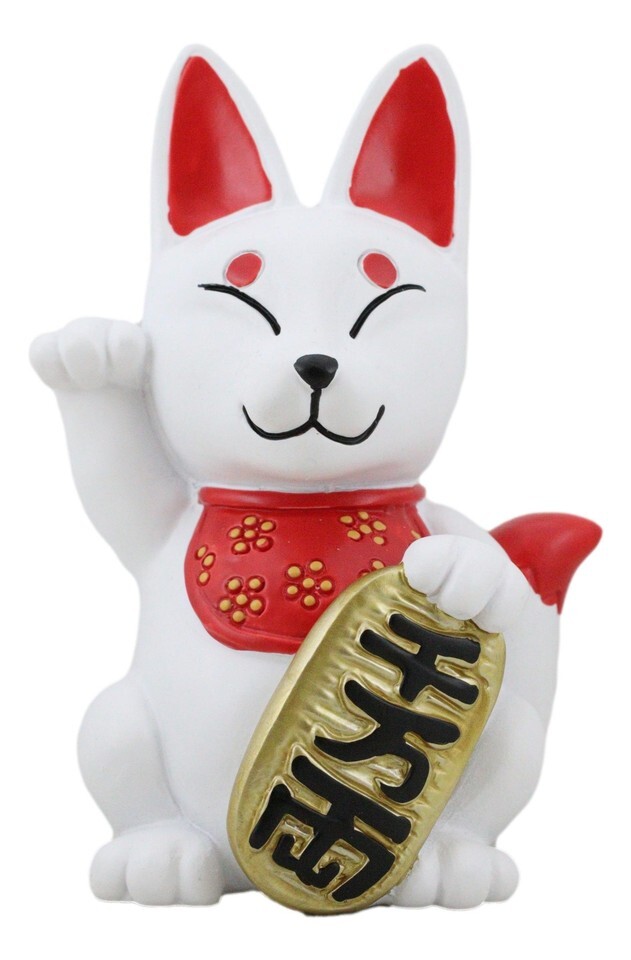 Japanese Charm Maneki Kitsune Fox Statue Inari Shiba Inu Supernatural Wisdom