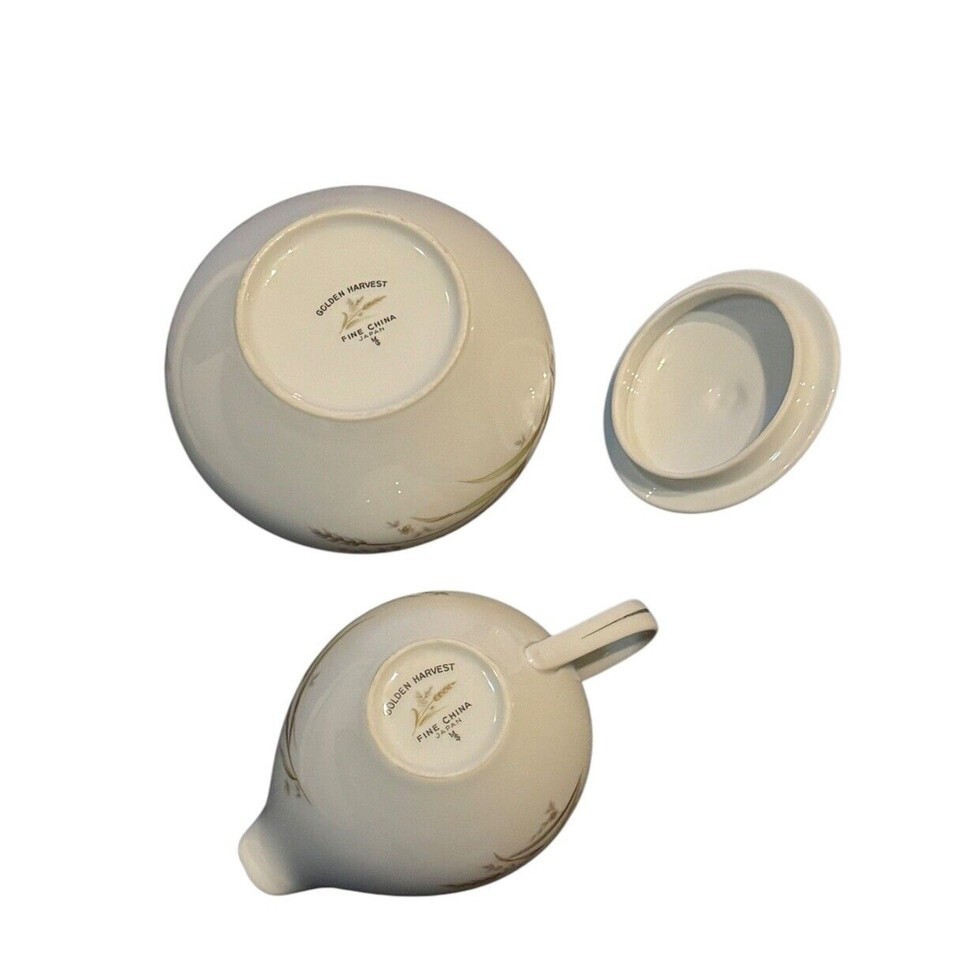 VTG Golden Harvest Wheat Sugar Creamer Set China Japan Wheat Gold Rim Coffee