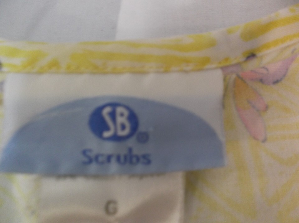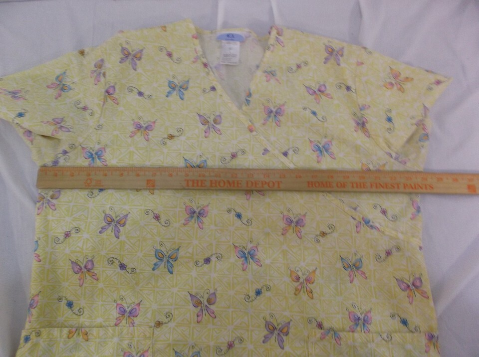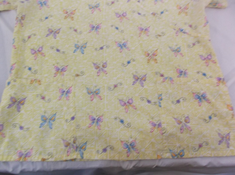 SB Scrubs Yellow Multi Colored Butterfly Pattern Scrub Top Large 140232