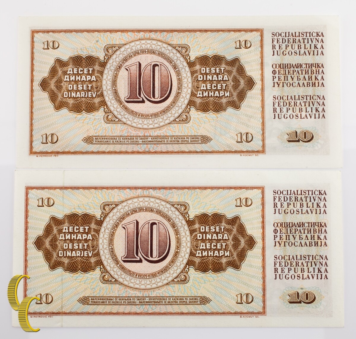 1968 Yugoslavia 2 pc 10 Dinar Note Lot ( and 50 similar items