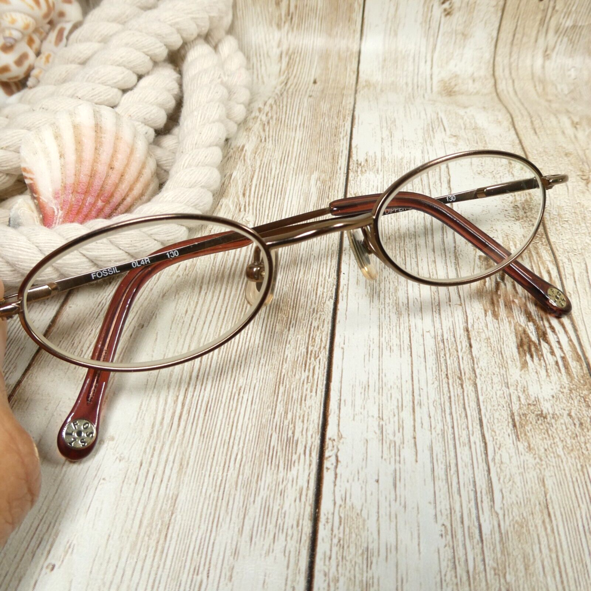 Fossil Polished Brown Metal Oval Eyeglasses and similar items