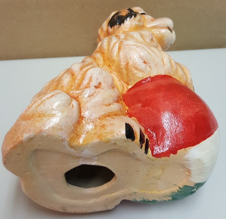 I) Cocker Spaniel Dog Figurine With Ball Home Decor Red White Green 5.5" Tall
