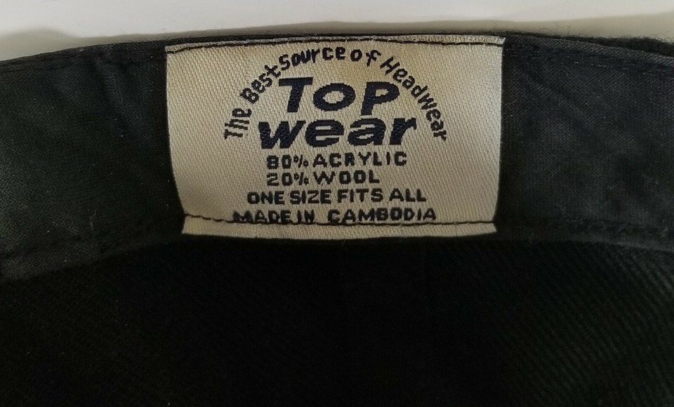 Hat is in overall good, slightly used condition. While in storage, it developed some discoloration on the edge of the bill. Please see pictures.