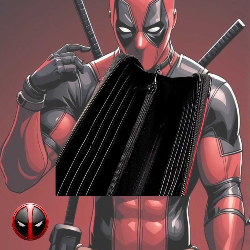 Brand New Dead-Pool Metal Badge Zip Around Hand Purse Clutch Wallet 100% PU Leather Inside of wallet features ID Window, billfold and multiple card slots