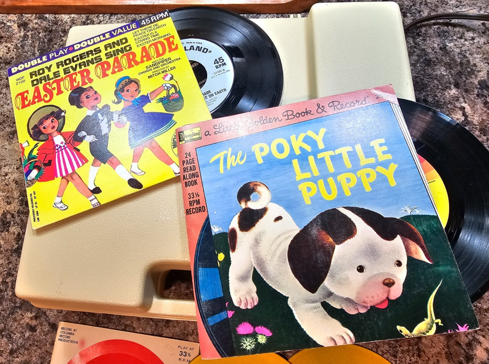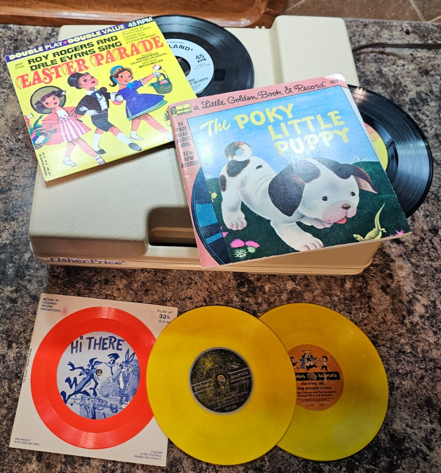 Vtg 1978 Fisher Price Kids Age Record Player, Books, Records USA see video ELE-SLF