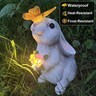 ? This Bunny Rabbit On Solar LED Rock Garden Statue is made of designer composite resin, hand painted and polished individually. The surface of the resin is flocked with artificial green moss giving it a delightful warm and inviting appearance.