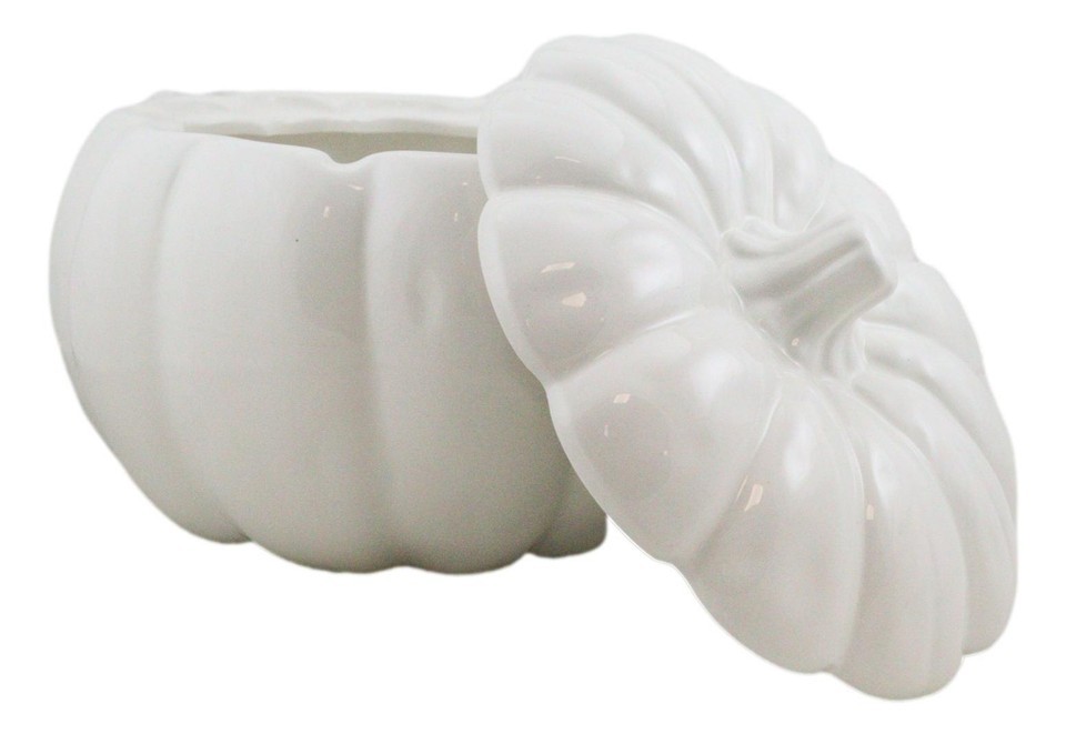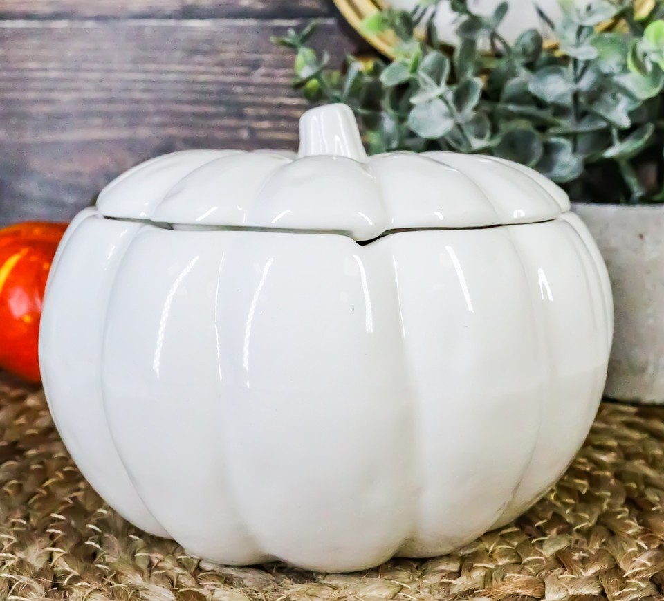 Ebros Ceramic Stoneware White Harvest Pumpkin Bowl With Lid 6"Dia