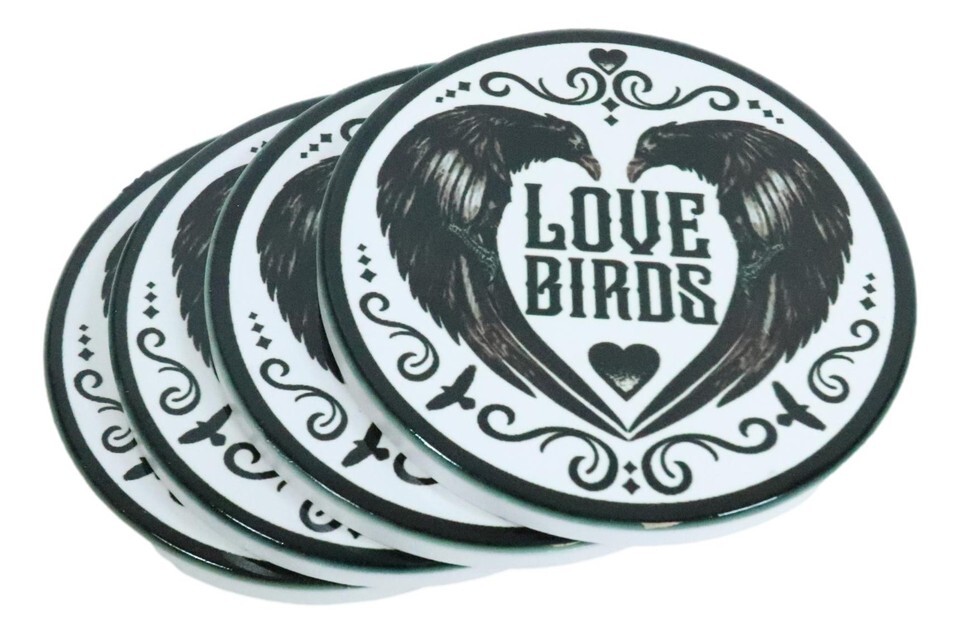 Ebros Poe's Raven Heart Love Birds Ceramic Coaster Set of 4 Tiles With Cork Backing