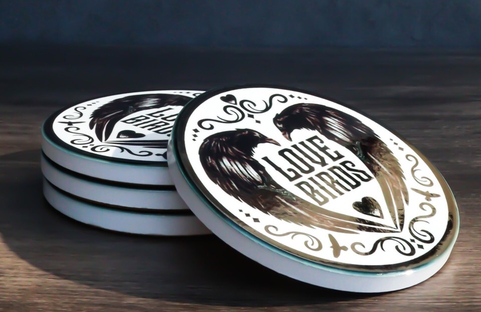 Poe's Raven Heart Love Birds Ceramic Coaster and 50 similar items