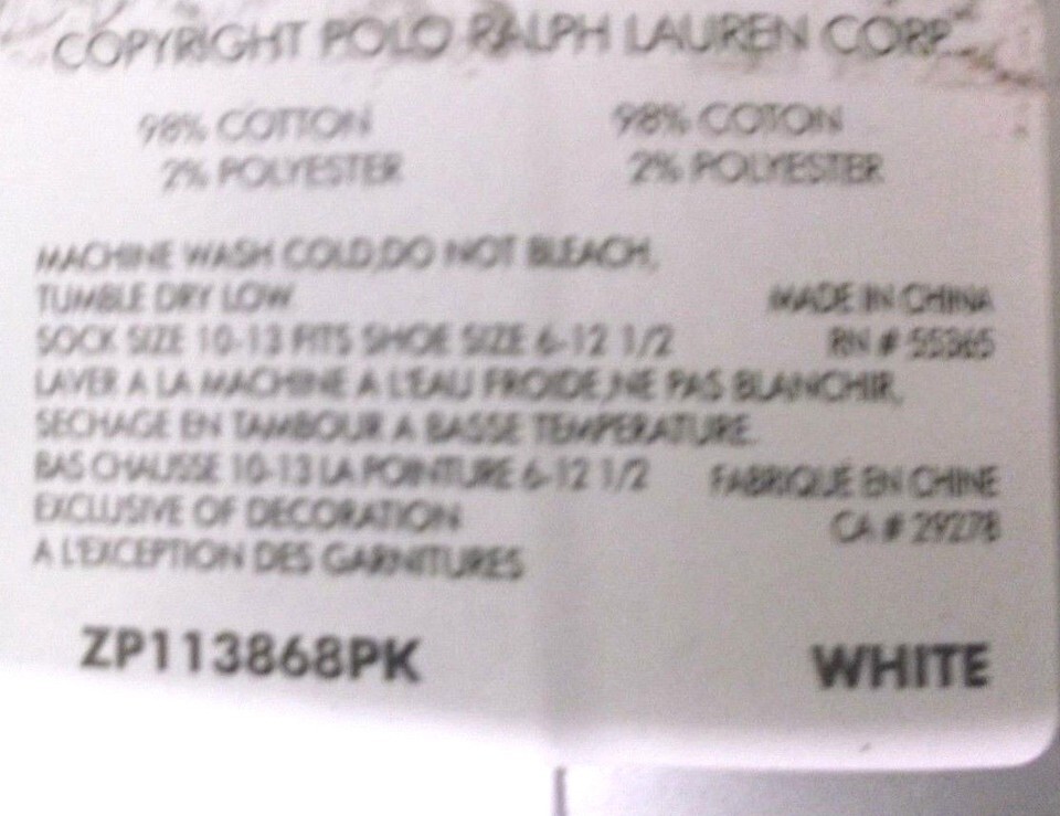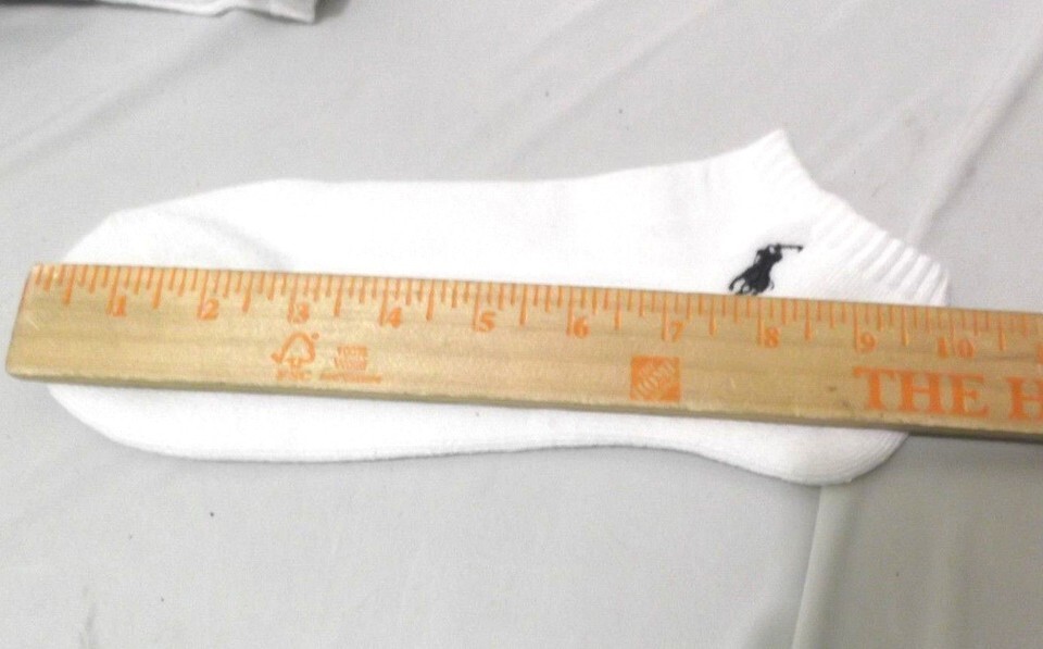 One Pair of Ralph Lauren Polo SIZE 6 - 12 1/2 Athletic Socks / Socks fit between 6 and 12 1/2 . I buy these by the 3 pack and I know sometimes you only need one pair . So I'm breaking them all up and selling them by one pair. These are the Athletic Sports Ankle Socks Color White . These are perfect for Walking Running Sports . These are Authentic Ralph Lauren Polo Socks . The PACKS I buy are sized from 6 to 12 1/2 . Try One PAIR and I guarantee you will be back to buy more .
