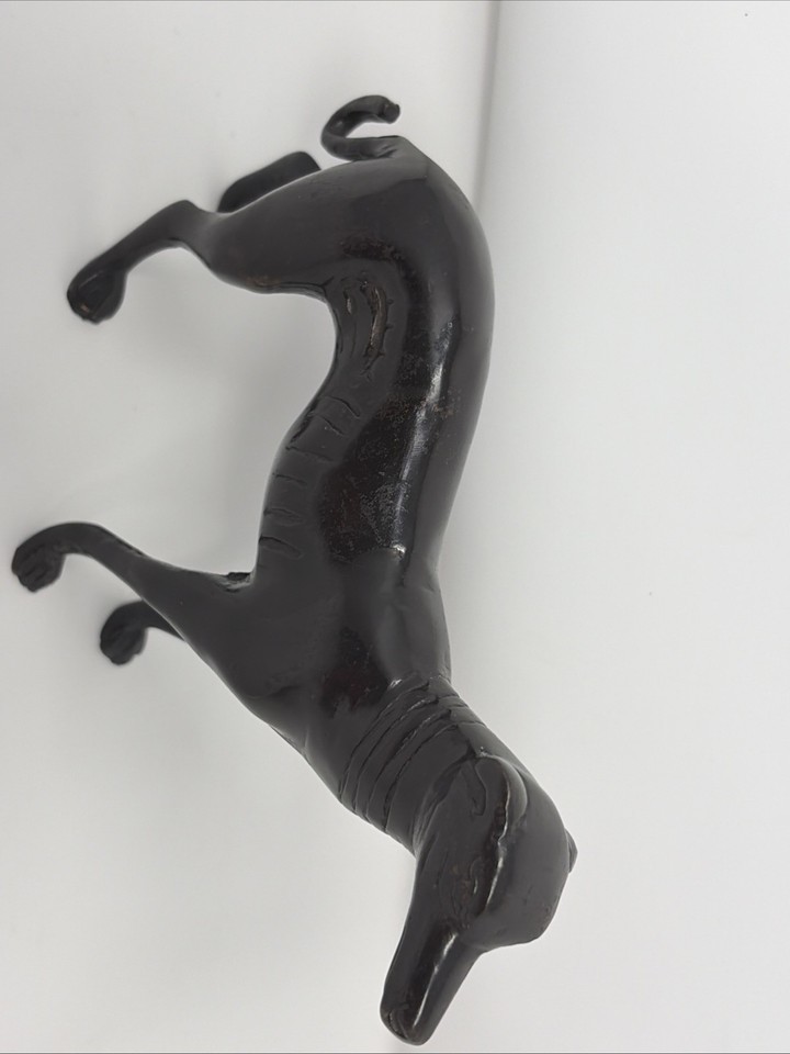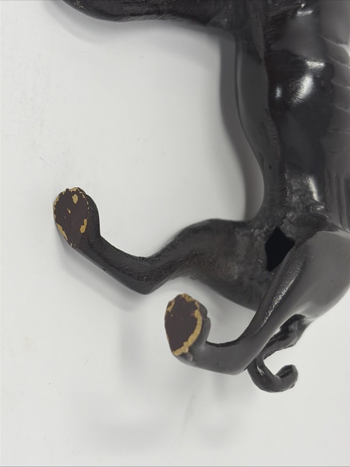 This vintage bronze Greyhound Whippet dog sculpture statue is a unique piece of art deco style collectible art. Standing at 6 inches tall, this exquisitely crafted sculpture captures the beauty and grace of the greyhound breed. The detailed bronze material adds a touch of elegance to any space, making it a charming addition to any dog lover's collection.