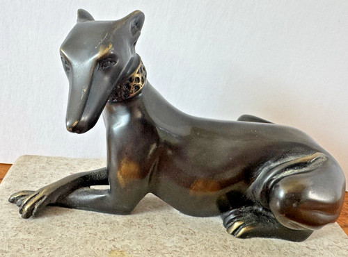 Vintage Bronze Greyhound Whippet Dog Sculpture Statue Art Deco Style 6” Height