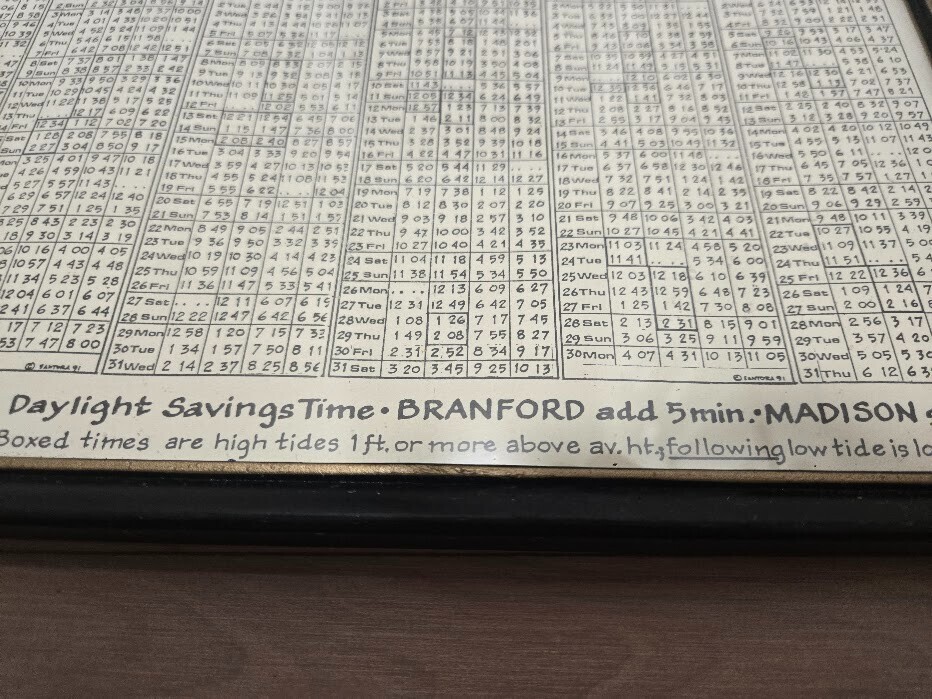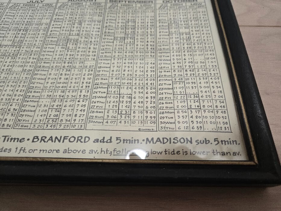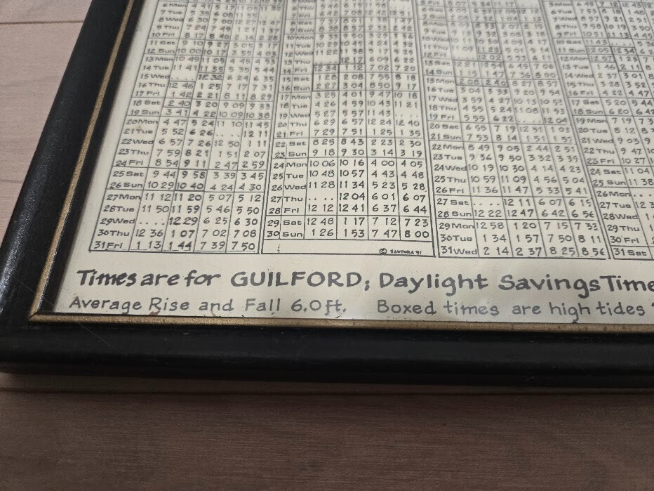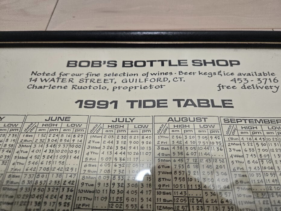 Bob's Bottle Shop 1991 Framed Tide Table Guilford CT