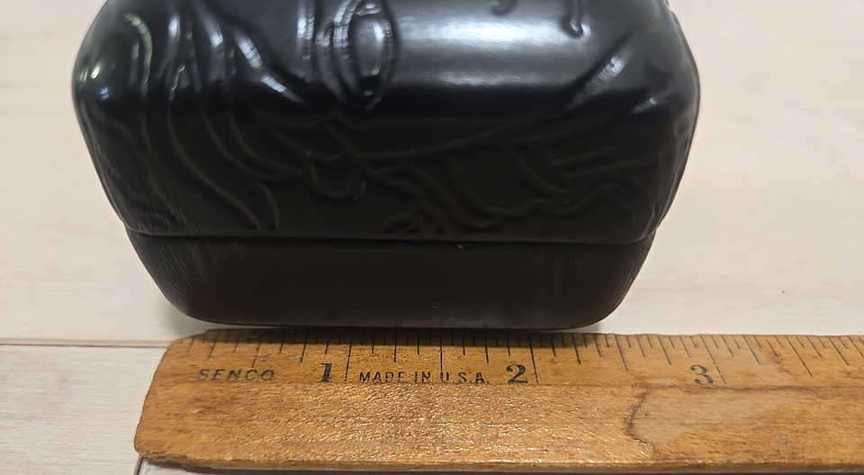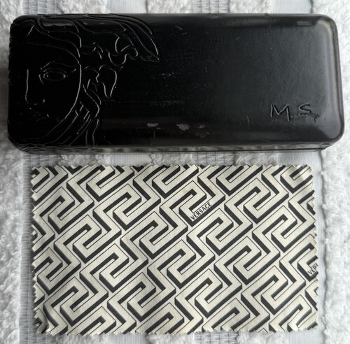 Up for bid is a Versace Medusa black leather eye case with cloth