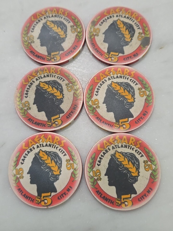 Lot Of 6 Caesars Atlantic City NJ Casino Chip $5