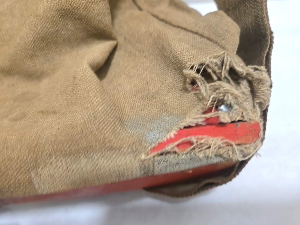 It has the original paper label with instructions, retains much of its original color.