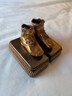 Vintage Single Bookend Baby Shoe 3 3/4” Tall Bronze/Copper Tone Scrollwork
