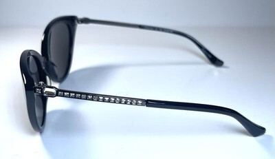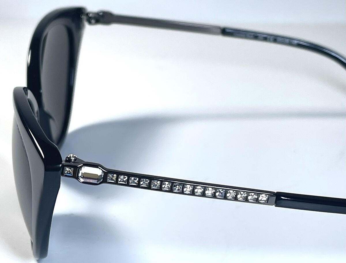NEW JUDITH LEIBER Inscribed Rhinestone Black Comet Sun Sunglasses + Case