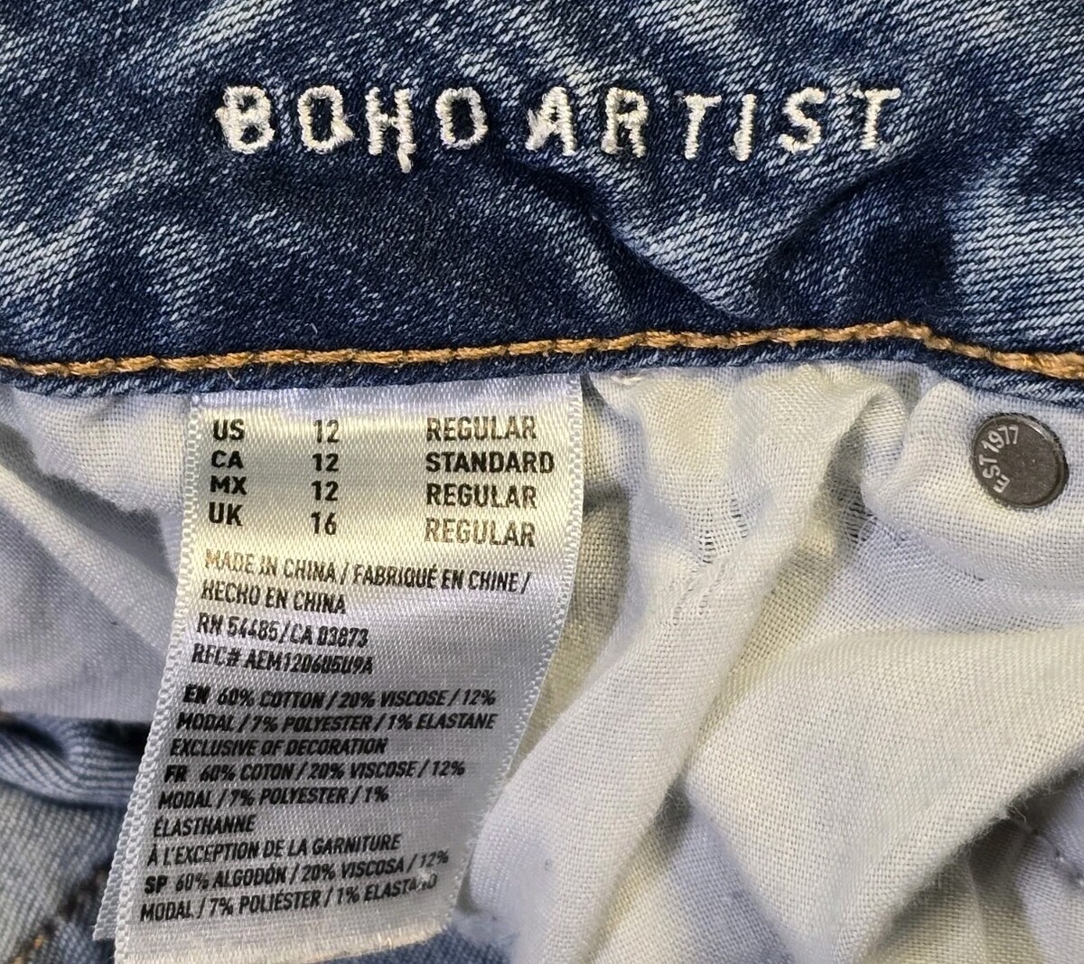 American Eagle Boho Artist Distressed Flare Jeans Super Stretch 12 Regular 32x31