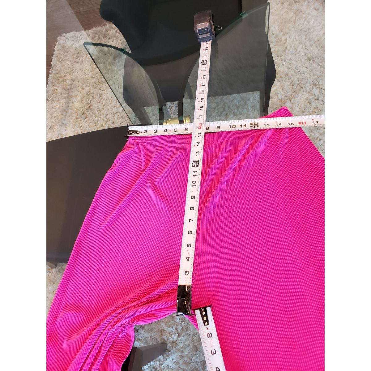 This vibrant hot pink pleated 2-piece lounge set includes a button-front long sleeve collared top and matching wide-leg pants. The size tag reads XL and fits like a modern xlarge with generous stretch. Made from 95% polyester and 5% spandex, this outfit is lightweight, comfortable, and bold?ideal for lounging, brunch, or making a statement with accessories.