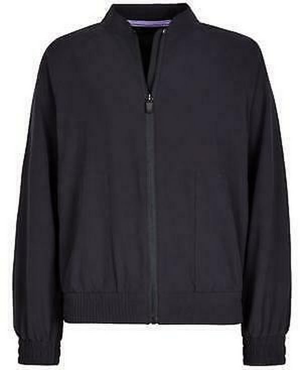 A bold graphic print stars at the back of this zip-up bomber jacket from Ideology. Two front pockets Zip closure at front Stand collar Graphic print at back Polyester/spandex Machine washable Imported