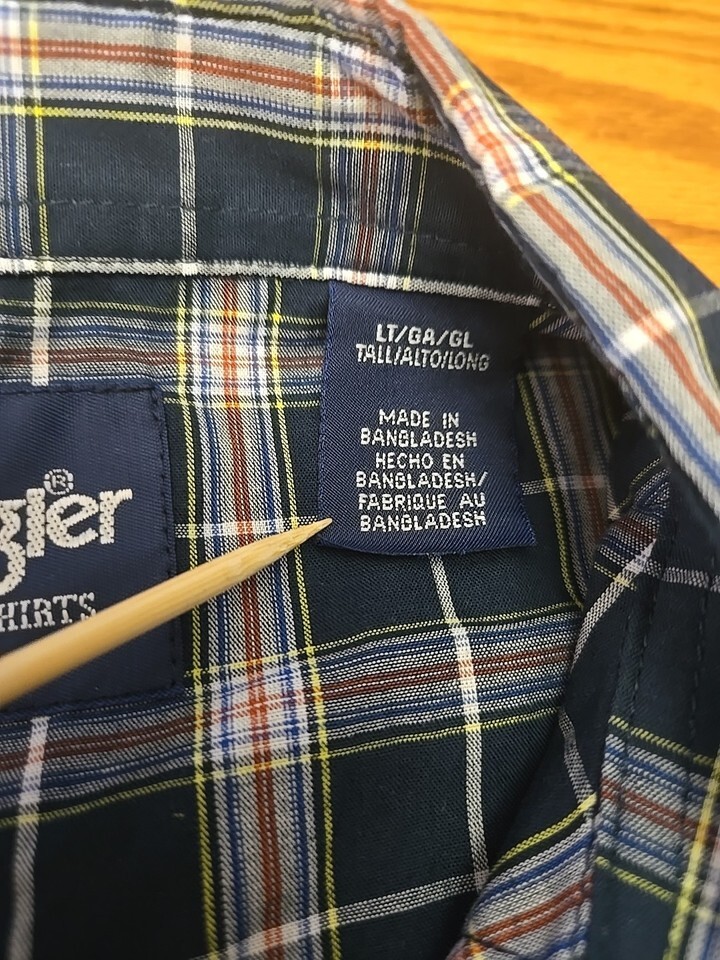 Wrangler Western Pearl Snap Shirt Mens Size Large Tall Blue Plaid Rockabilly
