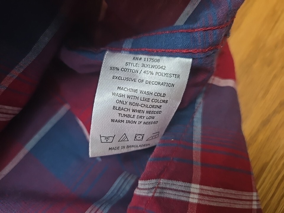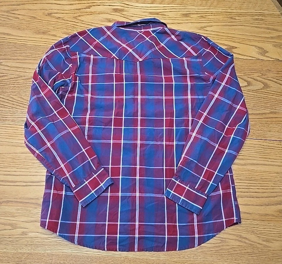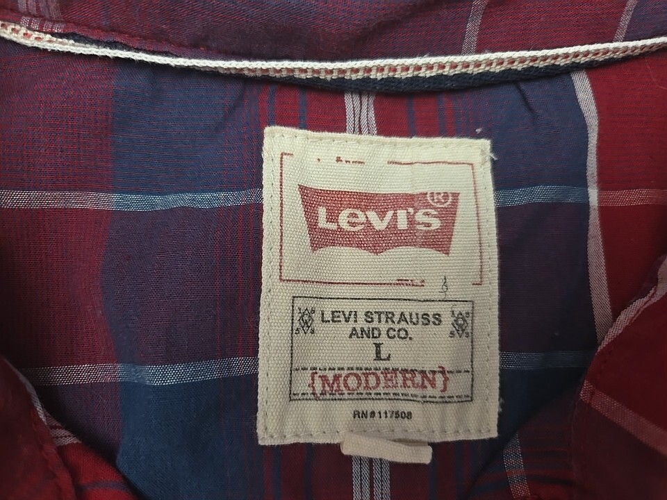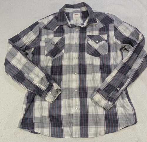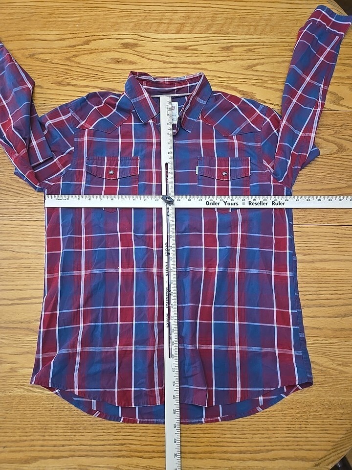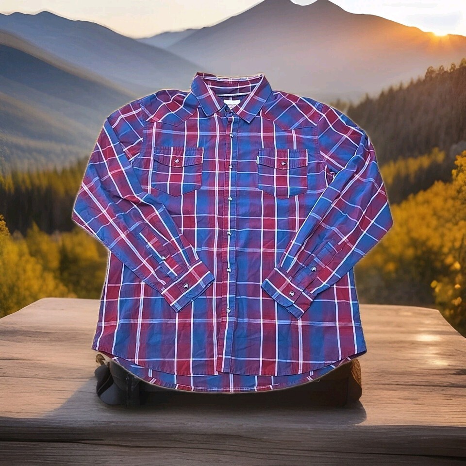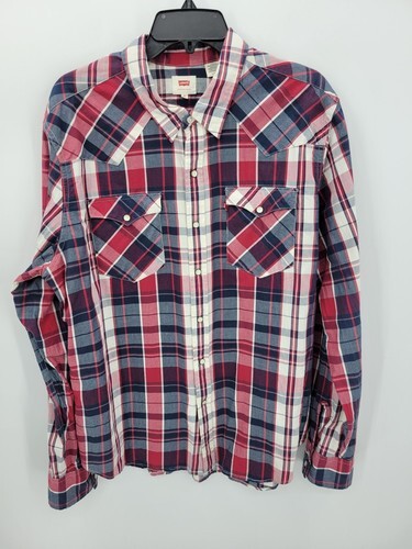 Levis Pearl Snap Long-Sleeve Shirt Mens Sz Large Red White Blue Plaid Western I2