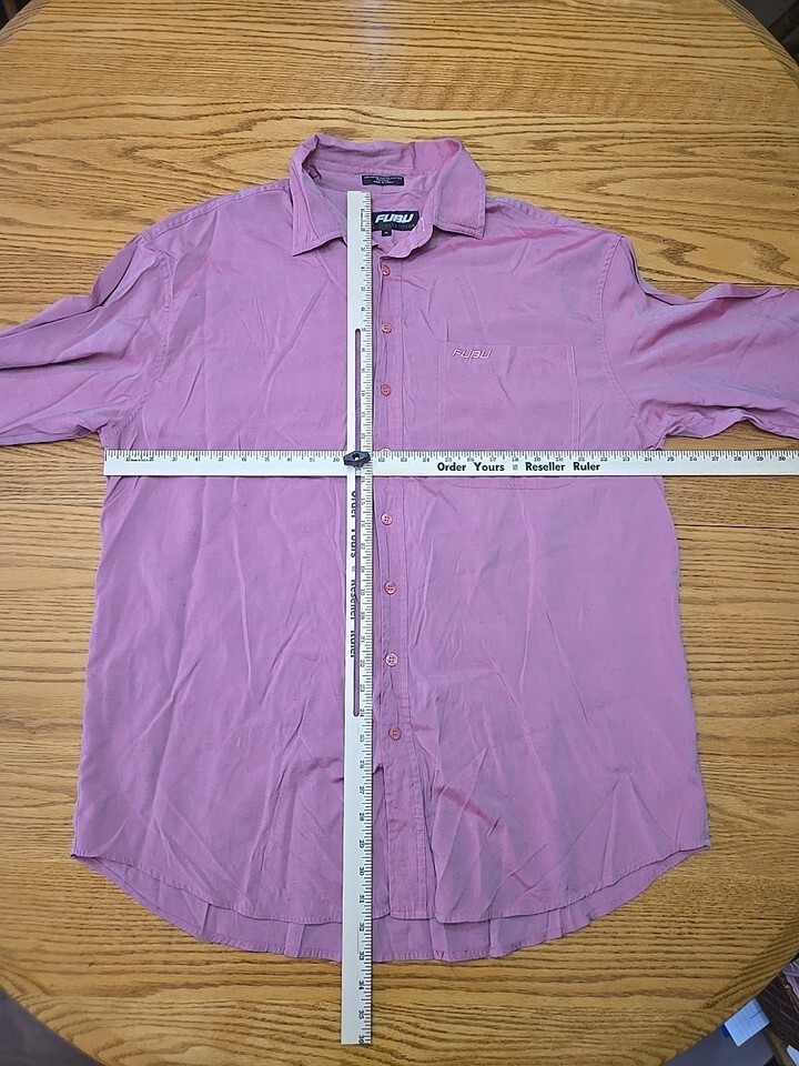 Elevate your wardrobe with this stylish FUBU The Collection Button Down Shirt. This men's size XL shirt features a solid pink color with a button-down collar and long sleeves. The shirt is made of a lightweight polyester and rayon blend, making it comfortable to wear in all seasons.