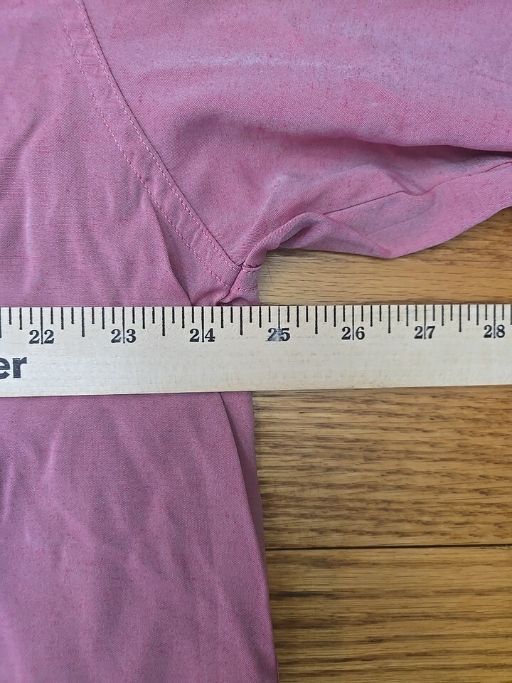 As is the nature with used clothing, original measurements and fit may have changed over time due to washing/drying and other factors. If you need additional physical measurements to help you make a decision, please let me know, and I will do my best to get you what you need.